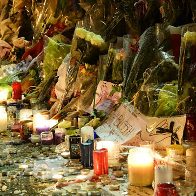 The German pianist who played in Paris following the terror attacks says "I took my piano and drove". David Martello played 'Imagine' on Saturday outside the Bataclan music venue, which was one of several sites to be targeted by gunmen. He then returned and played the song outside each place where attacks happened. Mr Martello says "This song contains everything we need right now in this time. It has to be a message to all people to imagine. Even the people who are not doing the right things. Everything starts with imagination." This clip is originally from Phil Williams on Monday 16 November 2015