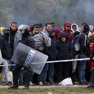 European Union ministers are to rush through proposals to strengthen the EU's external borders, with tighter checks on all passengers entering the Schengen zone (that's the passport-free area of free movement within the EU). It's in response to the Paris attacks of 13 November 2015. We hear voices from both sides of the debate in Europe, from the Euro-sceptic Swedish Democrat Member of the European Parliament, Peter Lundgren; also the Maltese MEP Roberta Metsola and the first vice president of the European Commission, Frans Timmermans. They were part of our World Questions debate in Brussels. (Photo: Slovenian officers guard a group of migrants blocked after crossing from Croatia in October 2015) (Credit: AP/Darko Bandic)