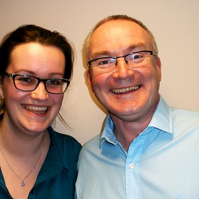 Iain Urchardan a' còmhradh ri neach-ionnsachaidh na seachdain, Eleanor Wood.