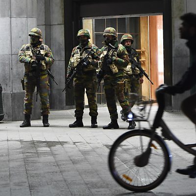 Brussels resident, Nadine Rosa-Rossa, tells Newsday people in Molenbeek are not sure who to be more scared of - the police or the terrorists. (Picture: Soldiers stand guard in front of the Brussels Central Train Station as the Belgian capital remained on the highest security alert level over fears of a Paris-style attack. Credit: EMMANUEL DUNAND/AFP/Getty Images)