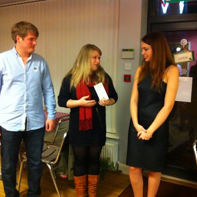 Earlier this year, a teenager from Leicestershire embarked on a marathon with a difference. Anita Jane, organised, produced and presented a 12 hour radio marathon in the name of charity, with the aim to raise as much cash as possible. Half of the money raised has gone to the local charity, Freddie's Footsteps, which exists to help and offer support to parents who have still born children. Thursday night, (17/12/15), saw the grande cheque was handed over to the founders of the charity, and BBC Radio Leicester's Owynn Palmer-Atkin went over to the event to find out more.