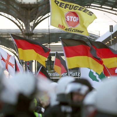 Demonstrators clash over Germany's immigration policy; French mosques open their doors to offer coffee and pastries; The UN hopes to deliver aid to the besieged town of Madaya in Syria (Photo: Police ranks opposite right-wing demonstrators in Cologne. Credit: AP / Oliver Berg)
