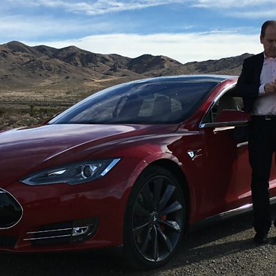 Elon Musk, the visionary tech entrepreneur behind the Space X rocket company and Tesla electric cars, talks to us about a coming transport revolution. Tim Kelly from the World Bank tells us how he thinks the economic benefits of the tech industry are going disproportionately to the world’s rich. Plus, could a robotic cat replace an actual pet for some people? Our Silicon Valley reporter Dave Lee gives it a try. Presented by Rory Cellan-Jones, with special guest Ingrid Lunden from TechCrunch Europe. (Picture: Rory Cellan-Jones with Tesla car)