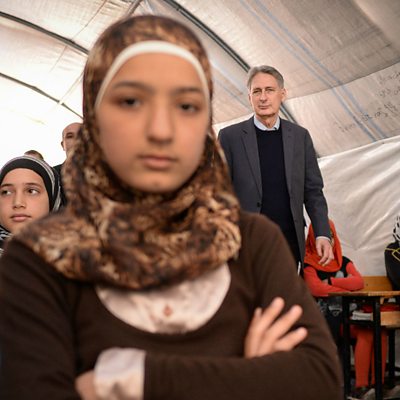 Syrian refugees in Turkey say they are being illegally forced to return home to a war-zone; A man is in a coma following a drug trial in France and Wikipedia turns 15. (Photo credit: Press Association:Philip Hammond visit to Turkey)