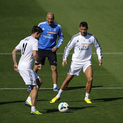 Zinedine Zidane's former Real Madrid and France teammate Christian Karembeu told the BBC World Service that he is 'sure' Zidane will be a success as Real's new manager. Karembeu says that 'all the talent inside the team can perform better and his arrival will boost this talent'. Picture: Christian Karembeu and Zindedine Zidane face each other in a Juventus legends against Real Madrid legends match in 2013. Credit: Getty Images.