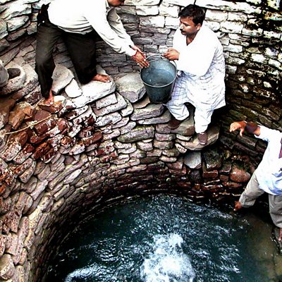 Indian sociologist Lyla Mehta argues there’s plenty for all: the problem is distribution. Photo: Indian men load buckets from a 160 year old well in Bhopal, India. Getty Images