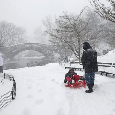 Winter Storm Jonas - dubbed Snowzilla - wreaks havoc on US East Coast; Syria Talks Delay; Rape toolkit Photo shows a man pulling a boy on a snow saucer during a snowstorm at Central Park, New York. Photo credit: Reuters Shannon Stapleton