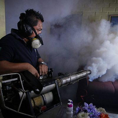 Vaccine efforts underway as Zika virus spreads; US Treasury says Putin is 'corrupt'; explorer Henry Worsley dies in Antarctic crossing. (Photo: A worker of the Salvadorean Ministry of Health fumigates a house in El Salvador. Credit: European Photopress Agency.)