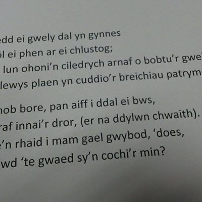 Telyneg Tegwyn Pughe Jones o Griw'r Llew Coch ar y testun 'Siswrn'. 10 marc