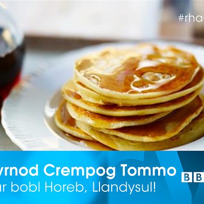 Tommo yn gofyn i bobl Horeb i goginio crempog i un dyn arbennig iawn