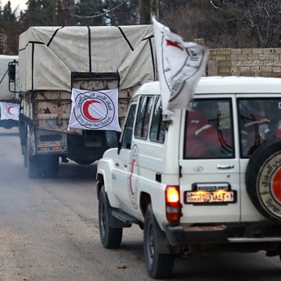 A besieged resident of Madaya on Syrian aid; blood cancer breakthrough; Eagles of Death Metal return to Paris. (Photo: Vehicles from the Syrian Arab Red Crescent drive in a convoy to Madaya. Credit: AFP /LOUAI BESHARALOUAI BESHARA/AFP/Getty Images)