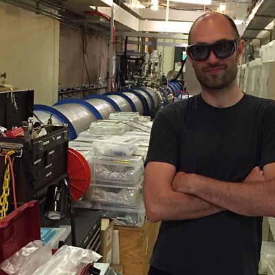Caltech scientist Jamie Rollins on the laser beam mechanism that LIGO uses to find tiny signals from gravitational waves. Image credit: BBC