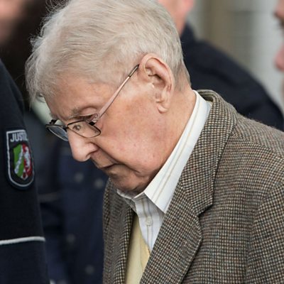 A Holocaust survivor has told PM that the trial of man who worked as a Nazi SS guard at Auschwitz is "more an act of vengeance than an act of justice". Iby Knill said she wanted to know if 94-year-old Reinhold Hanning had taken "any action to redeem what he had done." Prosecutors claim Mr Hanning was implicated in the murder of at least 170,000 people. (Image: Reinhold Hanning. Credit: EPA)