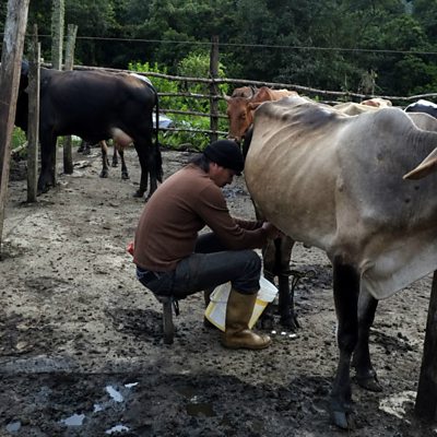Oil accounts for about 95% of Venezuela's export revenues, so the falling world oil price has hit it hard. Grace Livingstone reports from a country where food and product shortages have become the norm. Also, we speak to Ricardo Hausmann, director of Harvard's Center for International Development in the US, and Venezuela's minister of planning under the previous regime, about whether Venezuela is on the road to defaulting on its international debt. Plus, Rahul Tandon in Calcutta tells us how not to seal a business deal in India. (Photo: A farmer milks an emaciated undernourished cow. Credit: Juan Barreto/AFP/Getty Images)
