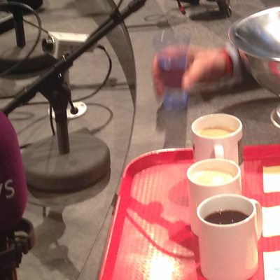 A report says large High Street chains are selling hot drinks containing as many as 25 teaspoons of sugar. But what do these sugary pick-me-ups taste like to a more educated pallet? Wine taster Charles Metcalfe gave his impressions to PM presenter Eddie Mair about the worst offender, in a live tasting. (Photo: The tasting. Credit: BBC)
