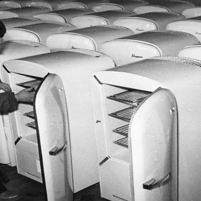 In the late 1920s Einstein was working on a grand unified theory of the universe, having given us E=mc2, space-time and the fourth dimension. He was also working on a fridge. Perhaps motivated by a story in the Berlin newspapers about a family who died when toxic fumes leaked from their state-of the-art refrigerator, Einstein teamed up with another physicist Leo Szilard and designed a new, safer refrigerating technology. And so it was that in 1930, the man who had once famously worked in the patent office in Bern was granted a patent of his own. Number: 1, 781, 541. Title: refrigeration. Phillip Ball explores this little known period of Einstein's life to try and find out why he turned his extraordinary mind to making fridges safer. Despite considerable commercial interest in the patent, Einstein's fridge didn't get built in his lifetime. The Great Depression forced AEG and others to close down their refrigeration research. But in 2008 a team of British scientists decided to give it a go. Their verdict : Einstein's fridge doesn't work. (Photo: Refridgerators stand in rows. Credit: Keystone/Getty Images)
