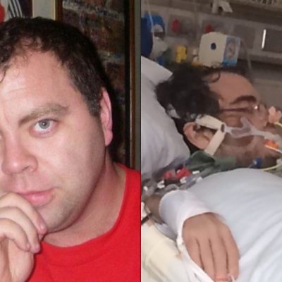 Mae'r gwr 39 oed - sy'n wreiddiol o Ynys Mon - wedi colli rhan o'i ddwy goes ac yn disgwyl llawdriniaeth fawr ar y galon fory.