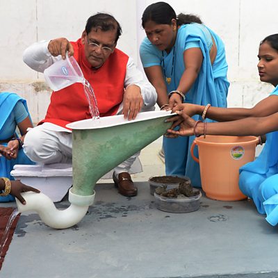 Fi Glover examines India’s pioneering work on sanitation for women. With stories from the workers who are inventing simple systems alongside active campaigning, she follows the changing attitudes towards women’s rights and their wellbeing. Our local reporter explores the corridors of universities to hear the young women who are putting themselves in charge of their own future – and whether those in charge of inspiring change nationwide are taking note. She puts the findings to entrepreneur Martha Lane Fox and professor Henrietta Moore of the Institute for Global prosperity. Together, they determine whether global nations should take on both the practice and the inspiration from India into their own communities. (Photo: The founder of the Indian sanitation charity Sulabh International Bindeshwar Pathak (C) demonstrates his low-cost and environmentally-friendly two-pit toilet technology. Credit: Sajjad Hussain/AFP/Getty Images)