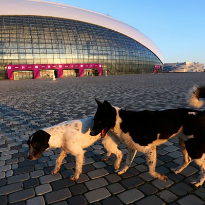 The 2014 Sochi Olympics are probably a blur of gold and silver medals, ski jumps and double axels. But perhaps you recall the city’s issue with stray dogs? Boston Globe reporter David Filipov met a group Russians and Americans still working to rescue the homeless canines. (Photo: Stray dogs walk in front of the Bolshoy Ice Dome just before the Sochi 2014 Winter Olympics. Credit: Quinn Rooney/Getty Images)