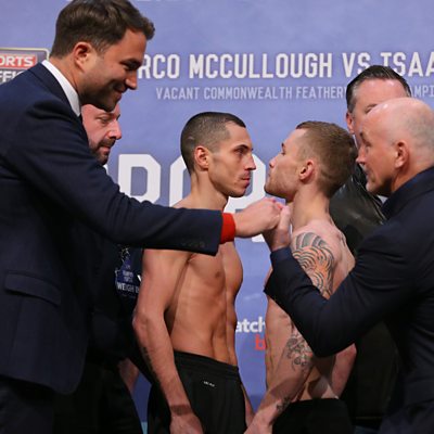 Scott Quigg's promoter Eddie Hearn has said that the atmosphere at the Manchester Area on Saturday evening for the unification bout against Carl Frampton will be 'the best ever seen on a night of British boxing'. Both men are unbeaten in their professional careers, making the 20,000 sell-out the most eagerly-anticipated domestic match-up for some time. Saturday's super-bantamweight bout represents the first time two undefeated British boxers have fought to unify a world title. This clip is from 5 live Sport on Friday, 26 February 2016.