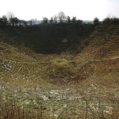 Archive recordings of the tunnellers who fought underground in WW1. They would dig tunnels under no-mans-land to detonate explosives under enemy positions. It was extremely dangerous work. During the war, all sides carried out military mining against enemy positions. The explosions were so large they could kill thousands of soldiers in an instant, and would scar the battlefield with huge craters. Photo: The La Boiselle crater was made when a huge mine was detonated on the first day of the Somme offensive during WW1 in July 1916. (Peter Macdiarmid/Getty Images)