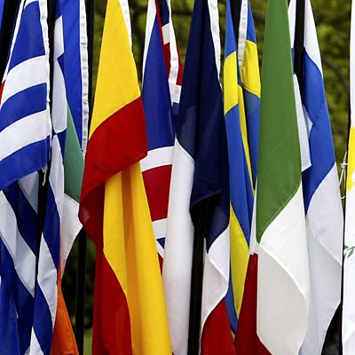 Two Latvian politicians discuss their fears about the possible withdrawal of Britain from the EU. Britons vote in a referendum on June 23, 2016. You will hear the mayor of Riga, Latvia, Nils Ušakovs - followed by Ojārs Ēriks Kalniņš, chair of the Foreign Affairs Committee in parliament. (Photo: Flags of the European Union countries, taken at the EU enlargement ceremony in 2004, when Latvia joined) (Credit: Ian Waldie/Getty Images)