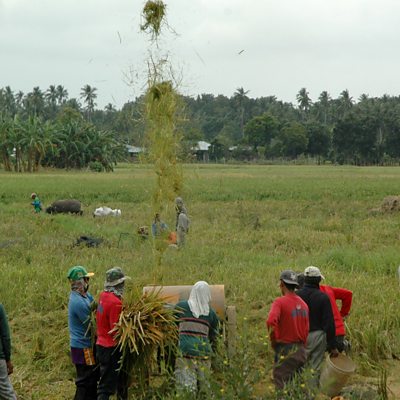 As the world’s population grows and the climate challenges our ability to grow crops, how can agriculture provide enough food? Can we get more from our current food crops for less? Scientists and farmers alike have been increasingly haunted by the environmental effects of high-intensity farming over the last half century. There is now an urgent need to be more mindful of the landscape and our finite ecological resources. Professor Kathy Willis, science director of Kew Gardens, looks at how we can breed better-adapted and more efficient crops by exploiting the wealth of natural diversity in our so-called crop wild relatives. They are the species from which all our current crops originally evolved. Many researchers now believe that these ancient relatives hold the key to future crop improvement. She finds out how the International Rice Research Institute in the Philippines is breeding new varieties that can cope with droughts and floods at unpredictable times. Storm surges make farmland in coastal areas too salty for most crops to grow. Pathogens and pests evolve so rice varieties are losing resistance to new strains of pathogens or insects. Kathy Willis meets the scientists who are reassessing our crops ancient ancestors that hold the genetic diversity that is needed to give the resilience we need to cope with the extremes of climate predicted for the coming decades. (Photo: Workers on a rice plantation. Credit: Nick Wood)