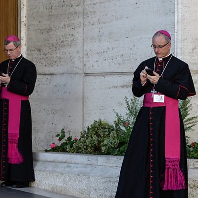 Zoe Kleinman reports on how churches are turning to the internet to widen their appeal. She meets Darren Parker, pastor at Everyday Church Online and Kevin Bennett from the Christian media company Premier who talks about the evolution of Christian websites. Business Daily's Ed Butler speaks to the Ghanaian developers of a new church app, and missionary Roald Lidal talks about using Manga to spread the word of the bible in Japan. (Photo: Catholic bishops check their phones at the Vatican; Credit: Getty Images)