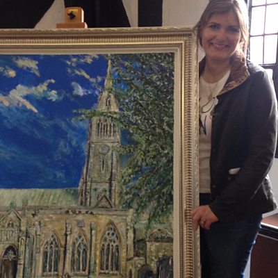 An art exhibition opens today (March 25th) at Leicester's Guildhall chronicling places associated with King Richard III. Kirsteen Thomson from near Kirby Muxloe has been all over England, Wales and Scotland to paint key areas in the last Plantagenet King's life. BBC Radio leicester's Bridget Blair has been to the Guildhall to meet Kirsteen as she was prepearing for the exhibition.