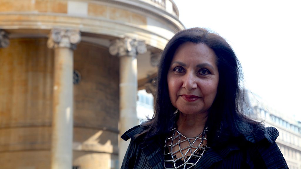 Photo: Imtiaz Dharker outside BBC Broadcasting House, London. Credit: Melanie Brown/BBC.