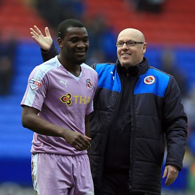 Brian McDermott talks to Tim Dellor after Reading's last-minute win at Bolton.