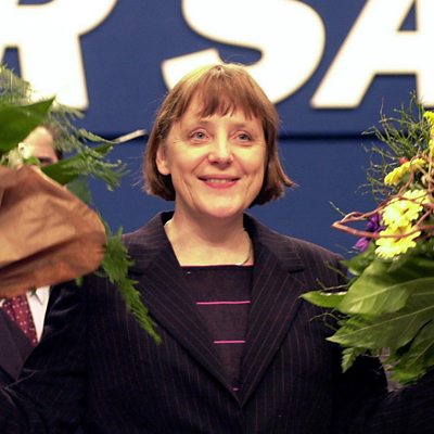 On April 10th 2000, Angela Merkel became the first female leader of a German political party - and then Chancellor in 2005. But before she became one of Europe's most powerful politicians, she had an entirely different career - as a theoretical chemist in communist East Berlin. Witness speaks to her former colleague Michael Schindhelm. PHOTO: Angela Merkel waves two bouquets after her election as chairman of the CDU in Essen, Germany on April 10th 2000.