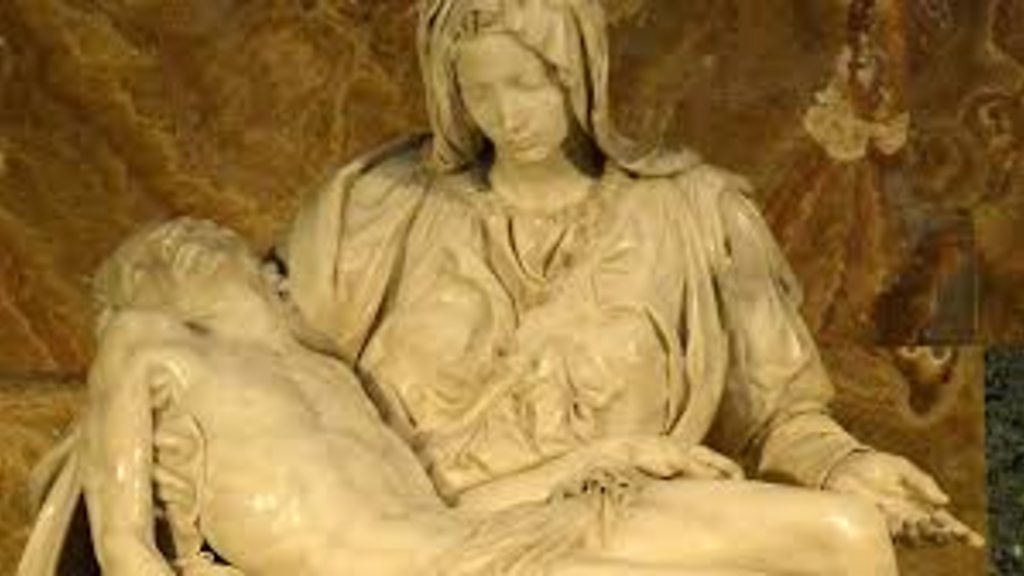 Pietà – Michelangelo Tu ôl i gondom gwarchodol y persbecs eistedda’r wyryf â chorff ei mab yn ei chôl. Mewn eglwys a dinas sy’n drewi o gelfyddyd hon yw seren y sioe. Down yn ein miloedd i wirioni ar dangnefedd y marmor; y graig a wnaethpwyd yn gnawd gan glyfrwch dwylo dyn. Ymhyfrydwn ym mhlygiadau ei dillad a chynildeb ei hing a diwinyddiaeth awgrymog y dweud. Gydag un llaw, gafaela’n dynn yn ei mab tra bo’r llall yn ei offrymu i’r byd a’i hwyneb yn lân a dihalog. Sancta Maria. Ceisiwn dynnu llun, ond ni all hwnnw wneud cyfiawnder â hi felly ymlusgwn tua’r loddest nesaf a gadael i’r forwyn ddioddef yn weddus. Ond nid marmor mo cnawd. Byddai’r Fair go iawn yn hŷn ac yn hyll fel galar a’i dwylo’n duo wrth iddi bawennu’r swp gwaedlyd a fagodd ar ei bron. Byddai’r un a suddodd i’w gliniau ar Golgotha yn udo fel bleiddast ac yn dwrdio’i mab am dynnu pobol i’w ben. Byddai hi, Mam yr holl famau yn poeri rhegfeydd at y Duw a’i treisiodd ac a gymerodd ei mab cyn pryd. Byddai hi, y cnawd a wnaethpwyd yn graig yn chwalu’r persbecs ac am waed bob un ohonom sy’n ymdrybaeddu yn yr aberth ac sy’n awchu’n farus am waed ei hogyn hi.
