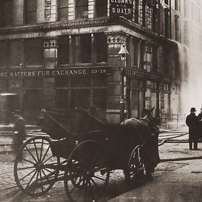 In 1911 a factory fire shocked New Yorkers and was said to have inspired the series of huge economic and social reforms which came decades later, known as the New Deal. Photo: Fire hoses spray water on the upper floors of the Asch Building (housing the Triangle Shirtwaist Company) on Washington and Greene Streets, during the fire in New York City, March 25, 1911. (Photo by Keystone/Getty Images)