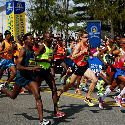 When two-time champion Lelisa Desisa returns Monday to defend his Boston Marathon title, his fellow Ethiopians across the globe will be watching with great interest. That includes two young runners on the local Cambridge Rindge and Latin School team. Image: Lelisa Desisa competes in the 118th Boston Marathon on April 21, 2014. Credit: Alex Trautwig/Getty Images