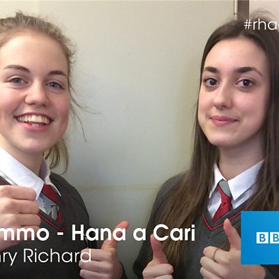 Cyfle unwaith eto i wrando ar ddewis cerddorol Hana a Cari o Ysgol Henry Richard
