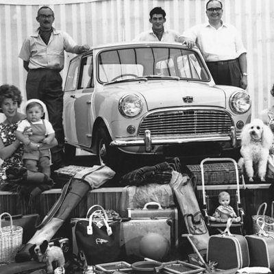 In 1959 the British Motoring Corporation unveiled a new, and very small, family car. It was called the Mini and it was an immediate hit with the public. It would become an icon of British design. (Photo: The Mini at its launch, surrounded by all the people, and luggage that could fit inside. Credit: R Viner/Getty Images)