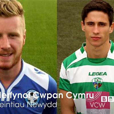 James Owen o Airbus ac Aeron Edwards o'r Seintiau Newydd yn edrych mlaen i'r ffeinal.