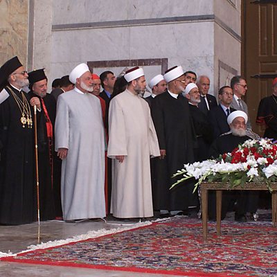 In May 2001 Pope John Paul the Second made a historic visit to Syria, and became the first pontiff to officially enter a mosque. The Grand Mufti of Syria, Sheikh Ahmed Kuftaro, accompanied the Pope to the ancient Umayyad Mosque in Damascus, where they both called for peace and unity of all faiths in the region. Photo: Pope John Paul II with Grand Mufti Sheikh Ahmed Kuftaro in Damascus 2001. Credit: Getty Images)