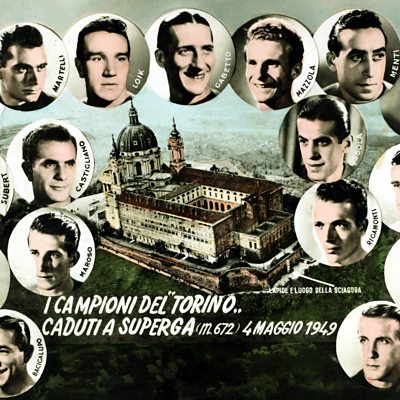 In May 1949, a plane carrying the Torino football team crashed into a mountain near Turin killing 31 people. At the time, "Il Grande Torino" were the dominant team in Italy and Europe, but the club never really recovered from an accident that killed almost the entire squad. Nick Marsh meets Carla Maroso,the widow of one of the Torino players, and life-long Torino fan Gianpaolo Oremezzano. PHOTO: A commemorative postcard for the Torino players (AP)