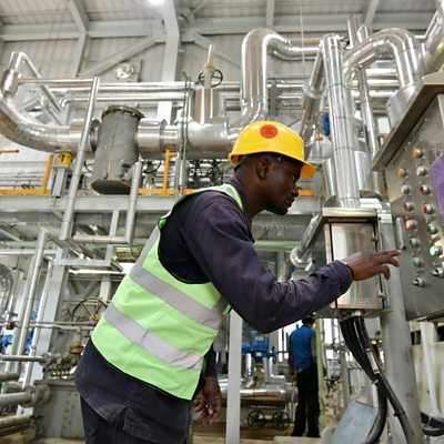 Is it Sub-Saharan Africa's turn to enjoy the bounty of mass industrialisation? Presenter Andrew Walker hears from a leading Nigerian businesswoman - Amy Jadesimi of port developer Ladol - who says why she thinks private businesses could play a leading role in sustaining the continent's economic boom, in particular through infrastructure development. One example is Ivory Coast, which is fast becoming the world's biggest grower of cashew nuts. The BBC's Tamasin Ford reports on how the country aims to take this one step further, and also dominate the processing of this cash crop. Lucy Kellaway of the Financial Times directs her ire at a supposedly morale-boosting email fired off by a senior Goldman Sachs executive. (Picture: Technician at a thermal power station in Ivory Coast. Credit: Sia-Kambou/AFP/Getty Images)
