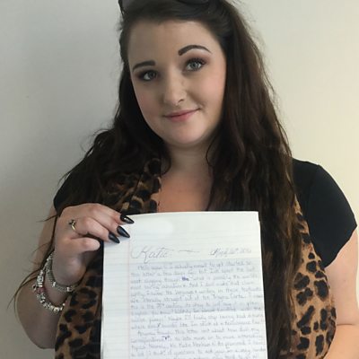 Katie Menham from Malmesbury has been writing letters to a prisoner on death row in America. She says they never talk about his imprisonment but more about day to day living. The idea came from a television documentary.