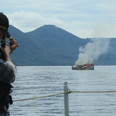 Interpol describes its efforts to police the world's oceans. Per Erik Bergh from Stop Illegal Fishing tells Manuela Saragosa the world's vast oceans are still relatively unprotected from a crime which is sometimes tied up with drugs and human trafficking. And Alistair McDonnell, from Interpol's fisheries unit, describes the efforts to police the high seas. (Picture: An Indonesian Navy officer targets a fishing boat. Credit: SEI RATIFA/AFP/Getty Images)