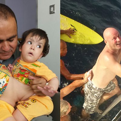South African businessman and surfer Brett Archibald has an extraordinary story of survival. In 2013 he fell overboard into the Indian Ocean at night. He then had to survive 28 hours, braving poisonous creatures..and seagulls! Brett's written a book about his experience called "Alone". Fatma and Mashal are twin baby girls from Pakistan's Swat Valley who were born joined together at the abdomen. Their father Nisar Ghani could not afford surgery to separate them but, with the help of paediatric surgeon Dr Amjad Choudhry, managed to find a potential lifeline for his daughters. There is no doubt that Jonathan is a survivor. He's made it to 182 years of age and is still going strong. He is not a human being of course, but a tortoise who's been looked after by English vet Joe Hollins, based on the remote island of St Helena in the South Atlantic. Joe explains why Jonathan is such a joy to care for. When the atomic bomb was dropped on Hiroshima in August 1945, Dr Akiko Mikamo's father Shinji was working on the roof of his house...just over a kilometre from the hypocentre of the bomb. Miraculously he somehow survived and has taught Akiko the importance of forgiveness. (L) Photo: Nisar Ghani with his twin daughters Fatma and Mashal. (R) Photo: Brett Archibald. Credit: Brett Archibald.