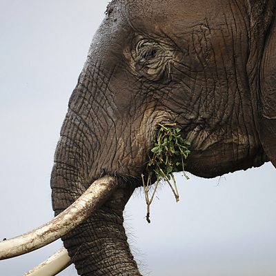 Eric Mararv was shot on the frontline of DRC's battle against elephant poaching. (Photo: Elephant eating grass. Credit: Tony Karumba/AFP/Getty Images.)