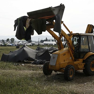 The deal between the EU and Turkey over migrants is not workable, says former Danish Prime Minister Helle Thorning Schmidt. Ms Thorning Schmidt, who is now chief executive of charity Save The Children, criticised the agreement where migrants arriving in Greece are to be sent back to Turkey if they do not apply for asylum or their claim is rejected. She said it had left many families stuck in limbo in Greece, which is clearing the Idomeni migrant camp near the Macedonian border. New, more formal camps for the migrants at Idomeni should be much better, she said, although there were still concerns over issues like sanitation. (Photo: A digger clears tents at the Idomeni camp. Credit: Getty Images).
