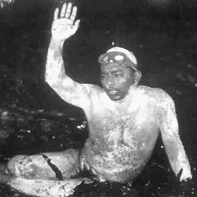 In 1961, Brojen Das, a swimmer from the Ganges Delta, broke the world record for the crossing from France to England at the sixth attempt. The achievement earned him an audience with the Queen and made him a hero in what is now Bangladesh. Farhana Haider introduces Brojen Das's own account and speaks to his daughter, Sanghita Pal. PHOTO: Brogen Das, still covered in grease after his record breaking swim 1961 (credit: Sanghita Pal)