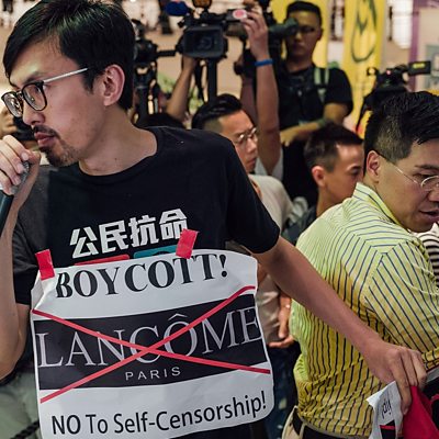We examine the very Chinese row engulfing the French cosmetics brand L'Oreal. It's been accused of cancelling a pop concert that it was sponsoring in Hong Kong, because of political threats from Beijing. Pro-democracy campaigners are up in arms. One has flushed her L'Oreal products down the toilet. The company denies buckling to pressure, citing unspecified "security concerns". But a leading US corporate strategist, Dr Robert Lawrence Kuhn, who advises several large US businesses as well as the Chinese government itself, tells presenter Ed Butler that Chinese political pressure on foreign companies is growing. Also in the programme, we examine how to launch your own start-up business whilst still doing your day-job. It is possible, according to Patrick McGinnis, author of "The 10% Entrepreneur: Live Your Startup Dream Without Quitting Your Day Job". But he says you really ought to share your plans with your boss. (Picture: Protesters against Lancome in Hong Kong; Credit: Anthony Kwan/Getty Images)