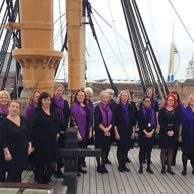 BBC Local Radio teamed up with BBC Outreach for a unique day of live music across the UK. Musical collaborations took place on over 40 bridges around the UK, as local stations "Take it to the Bridge". Including the bridge of the historic warship HMS Victory in Portsmouth. Marie Whitehouse from the Portsmouth Military Wives Choir spoke to BBC Radio Solent's Neil Sackley.