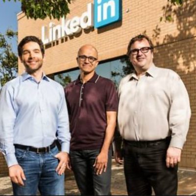 Microsoft has confirmed it's ready to offer more than $26bn to buy the business networking site LinkedIn. The price represents an investment by the Windows software giant of around $250 dollars for every LinkedIn customer. Our technology correspondent, Rory Cellan-Jones, did a double interview with the two leading figures in the story - Satya Nadella, the CEO of Microsoft, and Jeff Weiner, the boss of LinkedIn. Stockmarkets around the world appear to be pricing in the possibility that the people of Britain will vote to leave the European Union in next week's referendum. The President of the European Council, Donald Tusk, has warned that an exit vote could be the beginning of the end for the 28 nation bloc. We hear from our reporter Rob Young, who is touring continental Europe to get an outside perspective on the British debate: first stop Norway. Some of America's top military figures are meeting with international development activists in Washington to look at ways of working alongside each other. The US Global Leadership Coalition has been organised to examine how Washington can increase its international influence through so-called "soft power". We cross to Hong Kong for a preview of the latest Disneyland franchise in China -- Disneyland Shanghai opens later this week. And insight from FT correspondent, Lucy Kellaway, on why successful people seem to be trumpeting their failures as a way to get ahead. (Photo: LinkedIn chief executive Jeff Weiner (left), with Microsoft chief executive Satya Nadella and LinkedIn chairman Reid Hoffman (right). Credit: Microsoft)